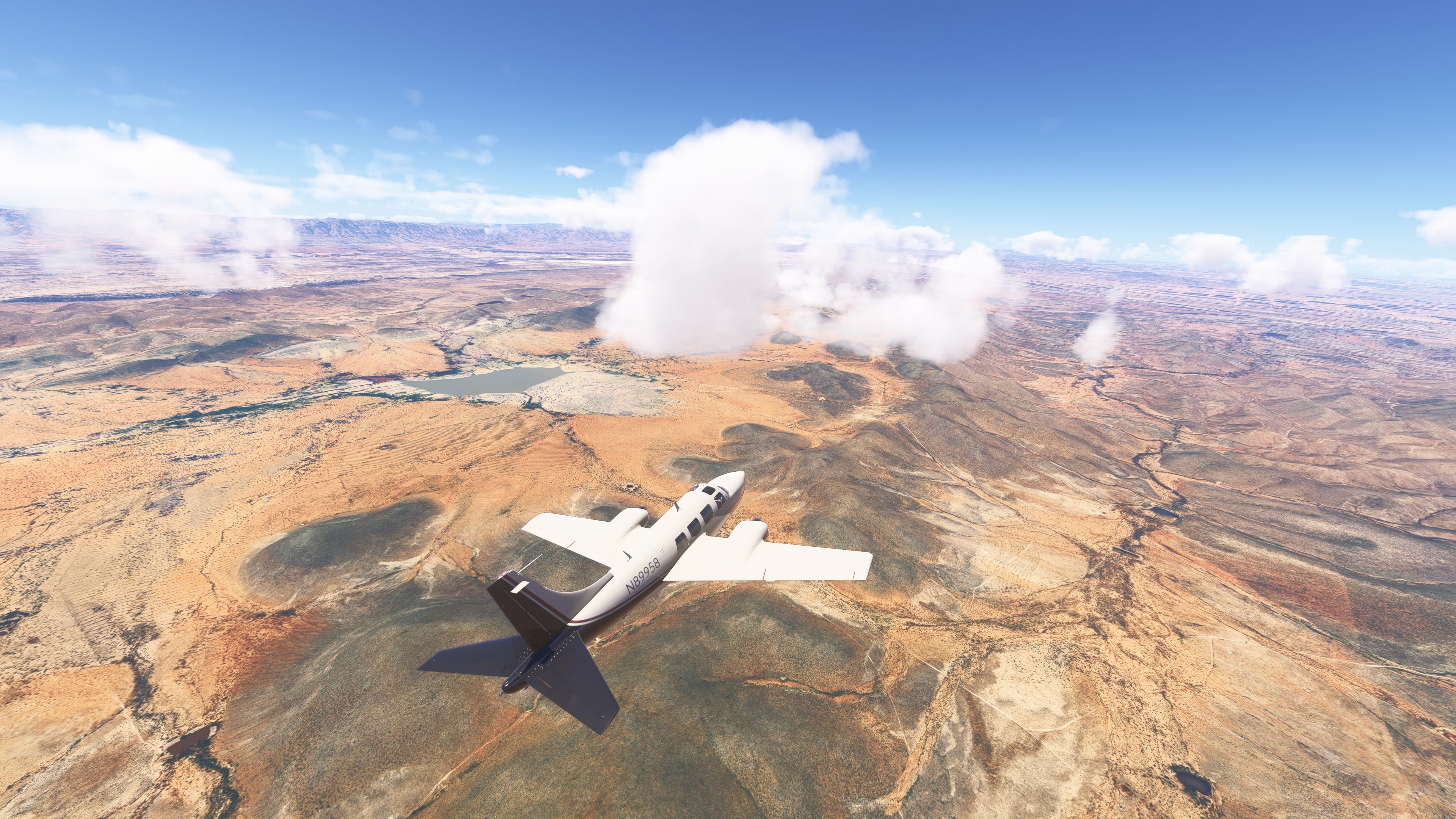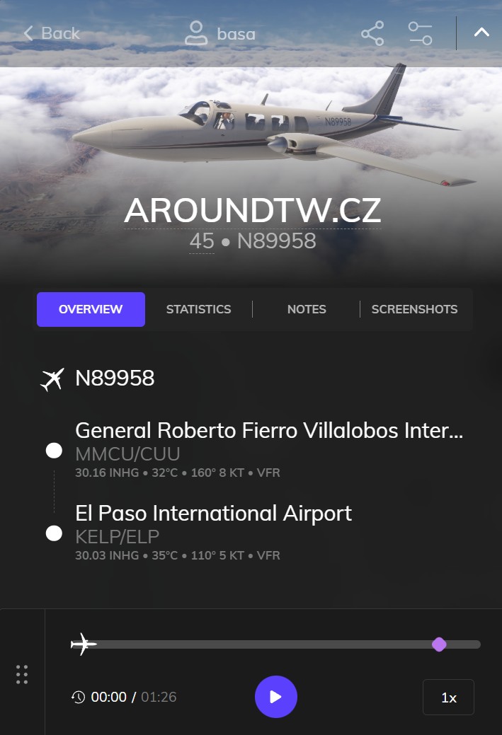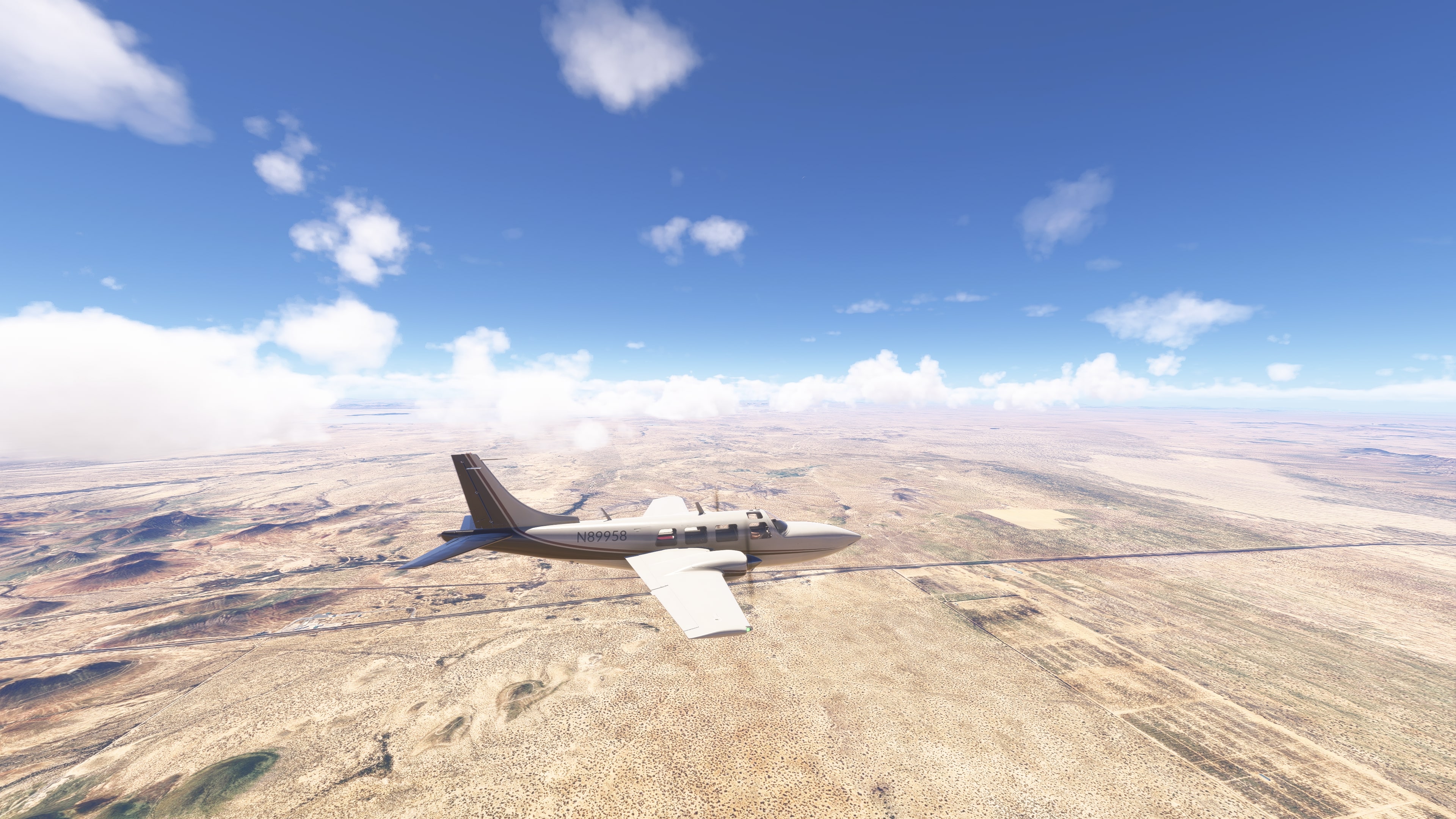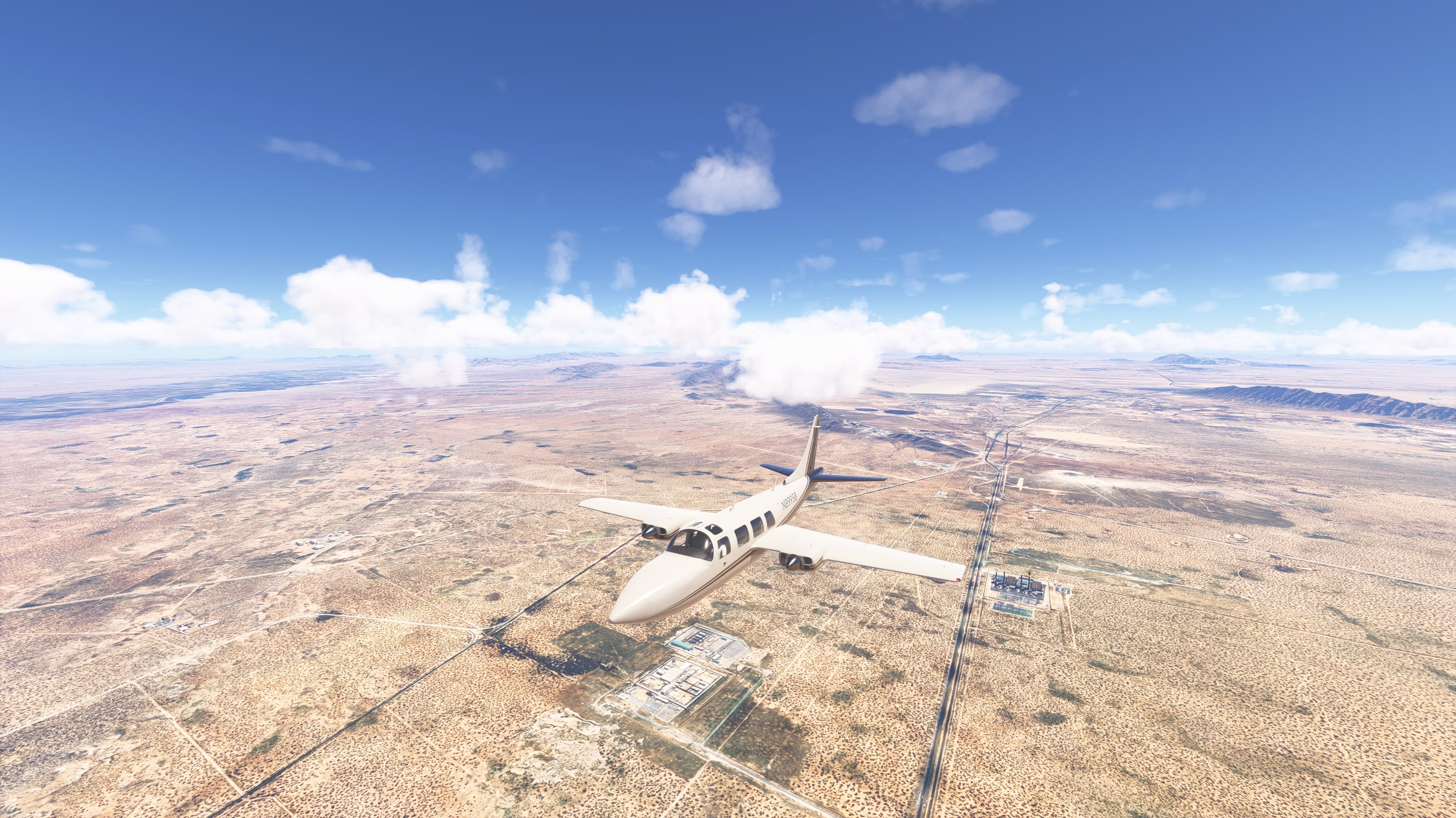 🛫 Start z Chihuahua City (MMCU) – letiště General Roberto Fierro Villalobos leží na okraji města. Krátce po vzletu se otevírá výhled na planiny a kopce severního Mexika. V dálce je vidět pohoří Sierra del Nido a suchá koryta řek.