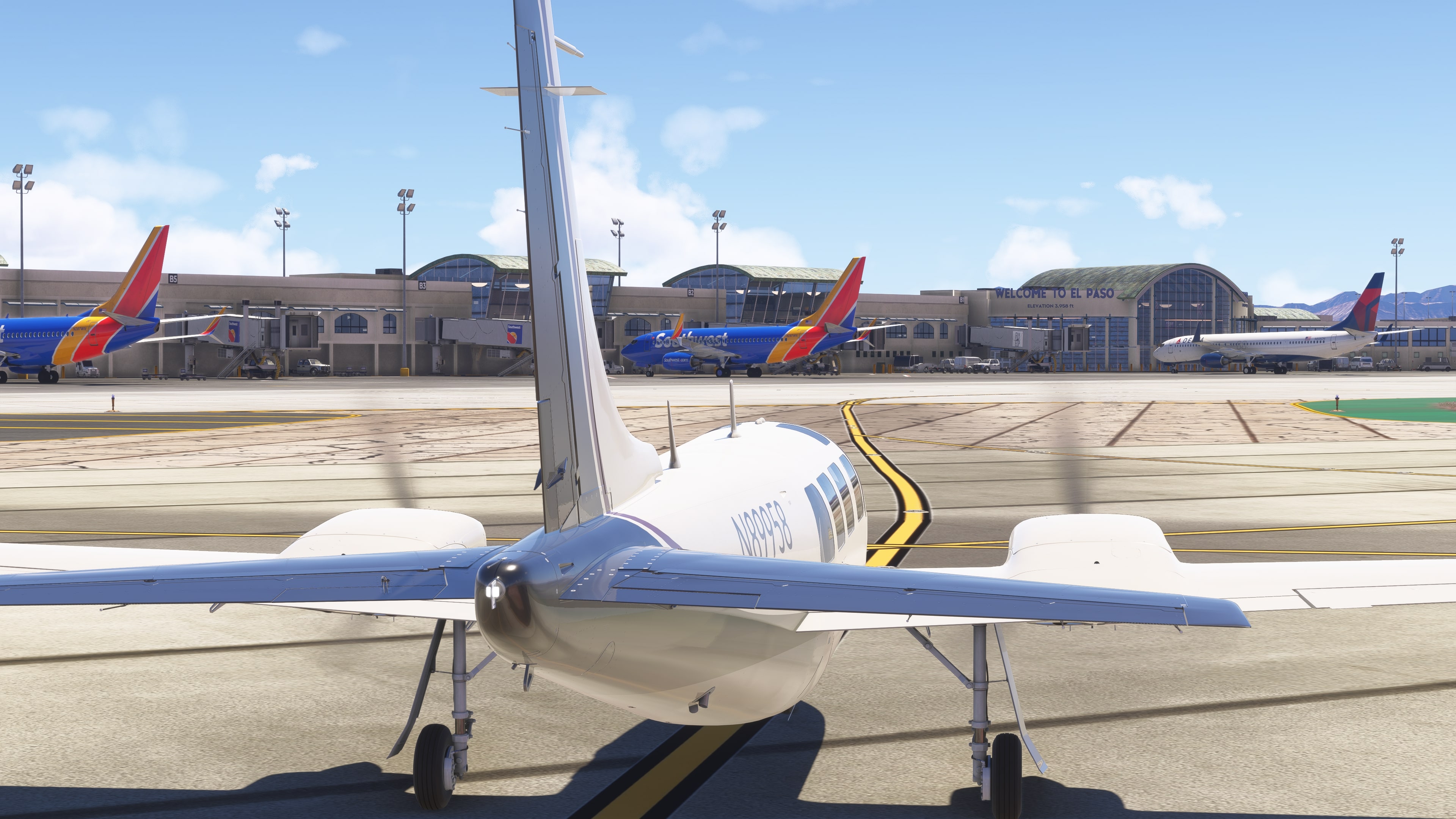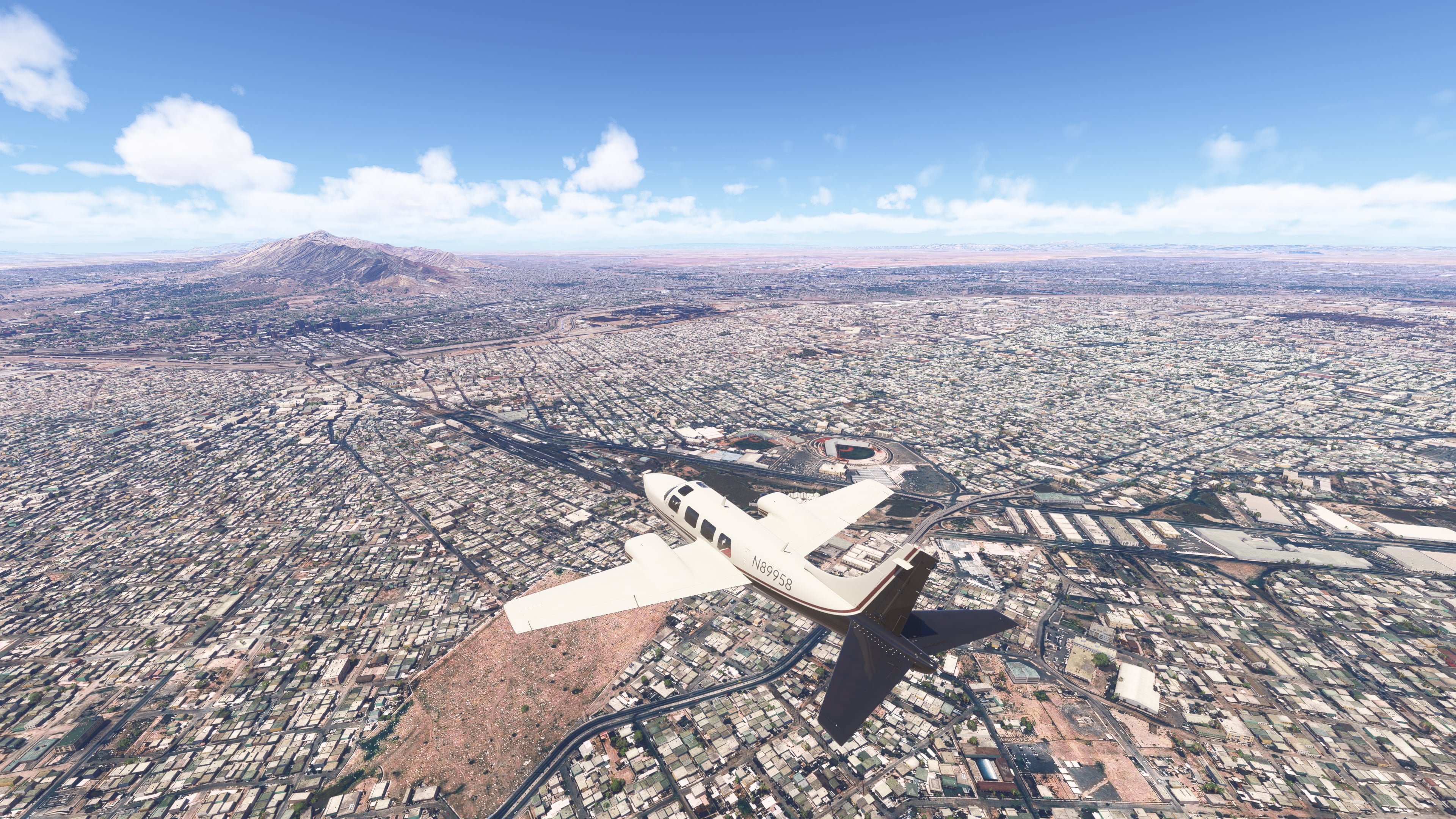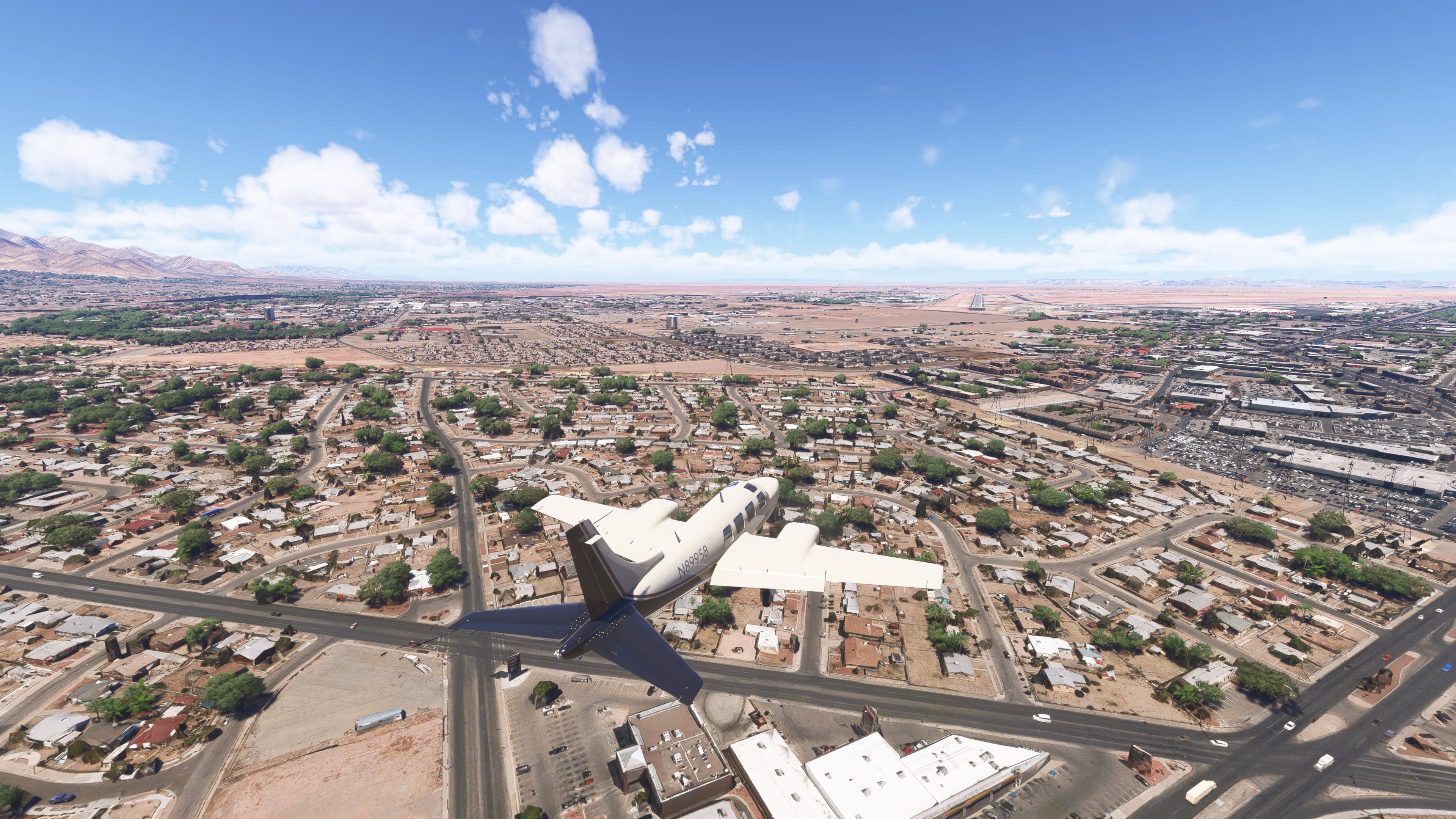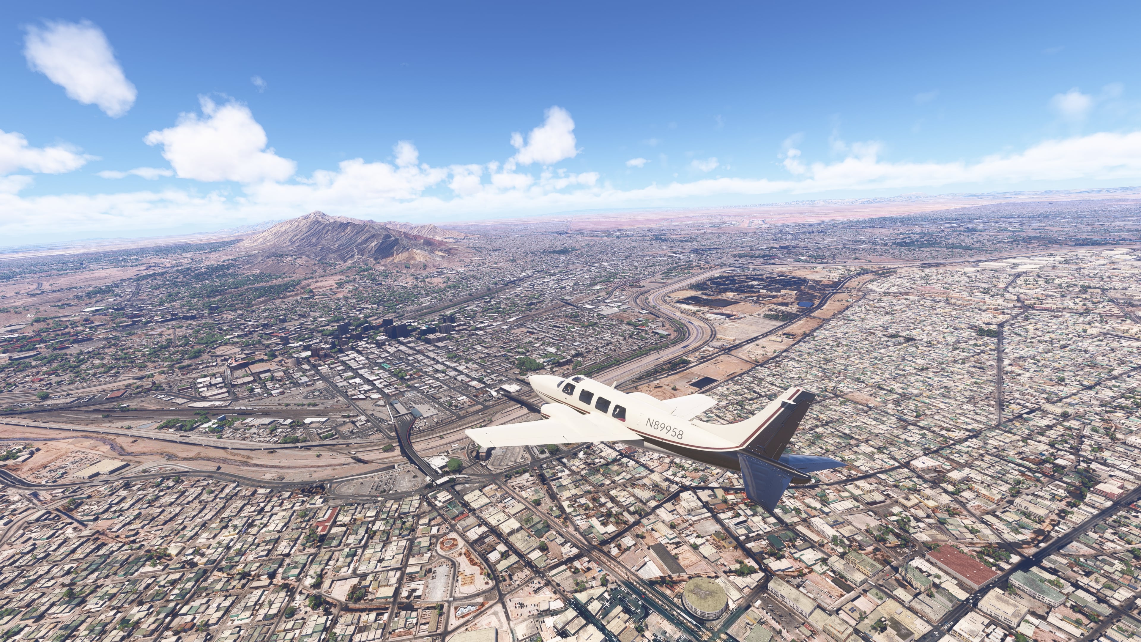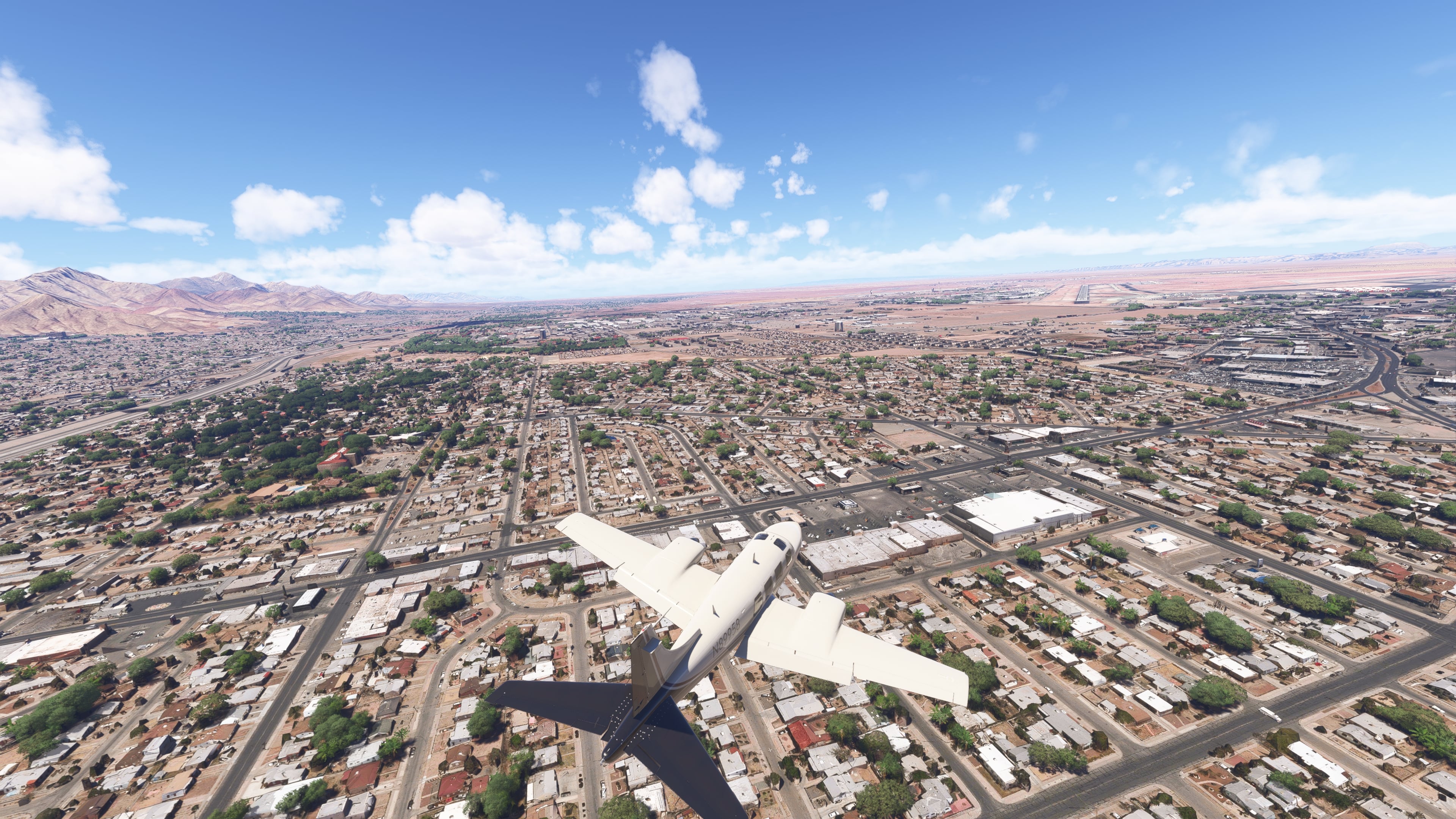 🛬 El Paso Intl (KELP) – přistání mezi štíty Franklin Mountains a městskou zástavbou.