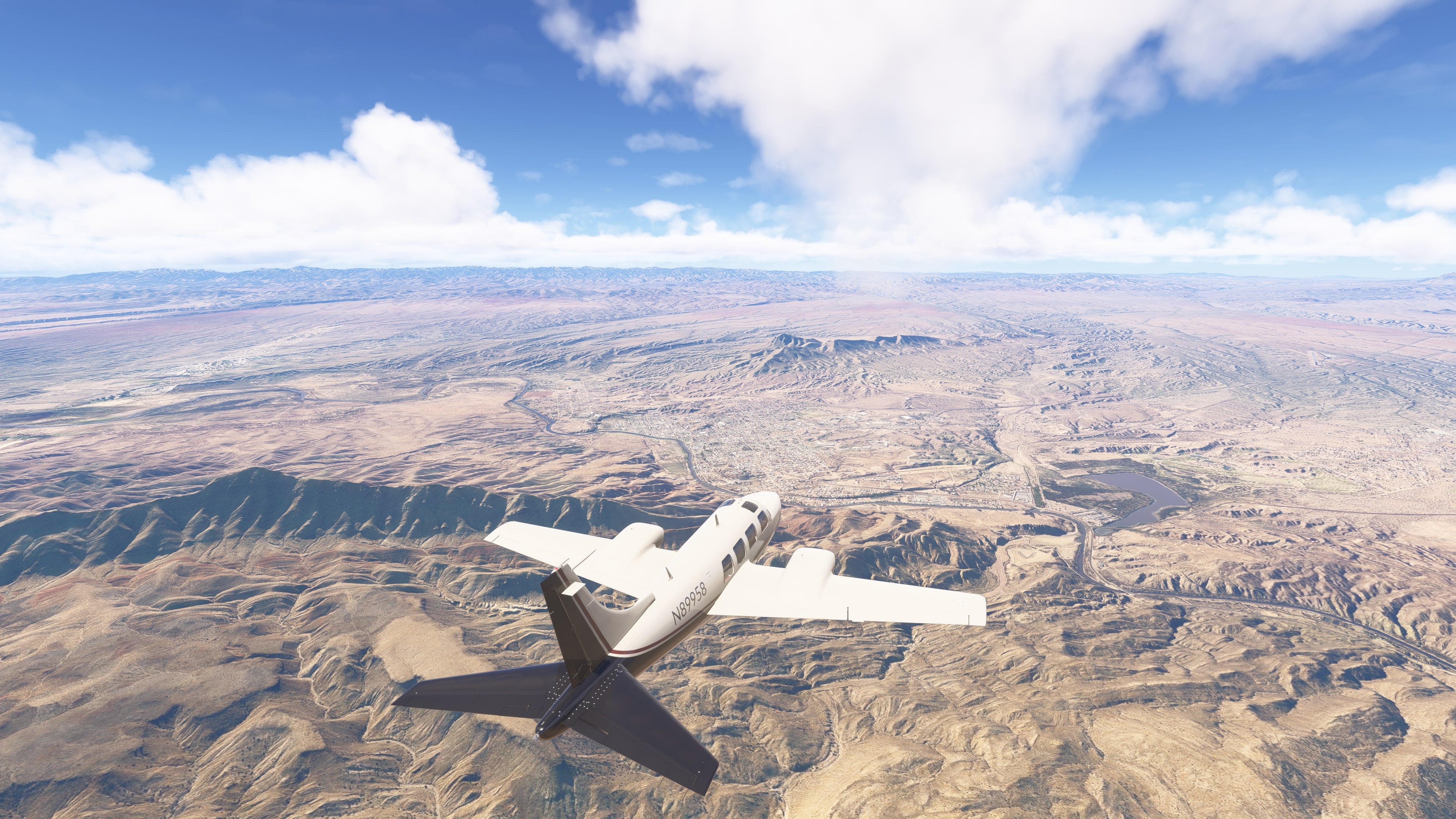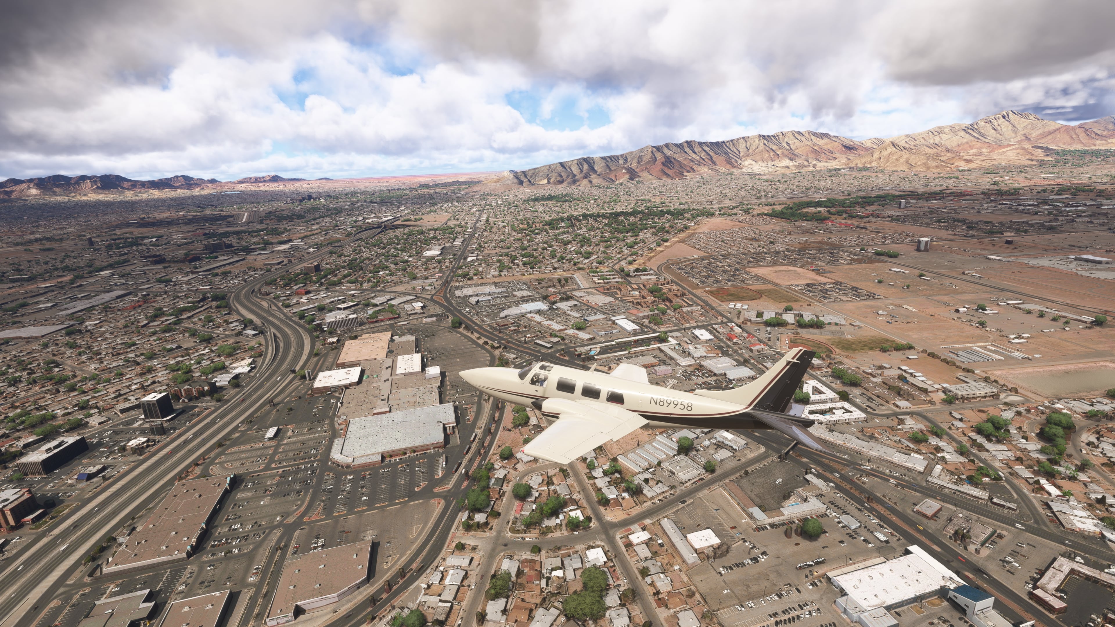 Departure from El Paso Intl (KELP) – the airport is surrounded by the Franklin Mountains. Shortly after takeoff, you can see the urban expanse of El Paso and Ciudad Juárez, separated by the Rio Grande River. The route heads northwest.