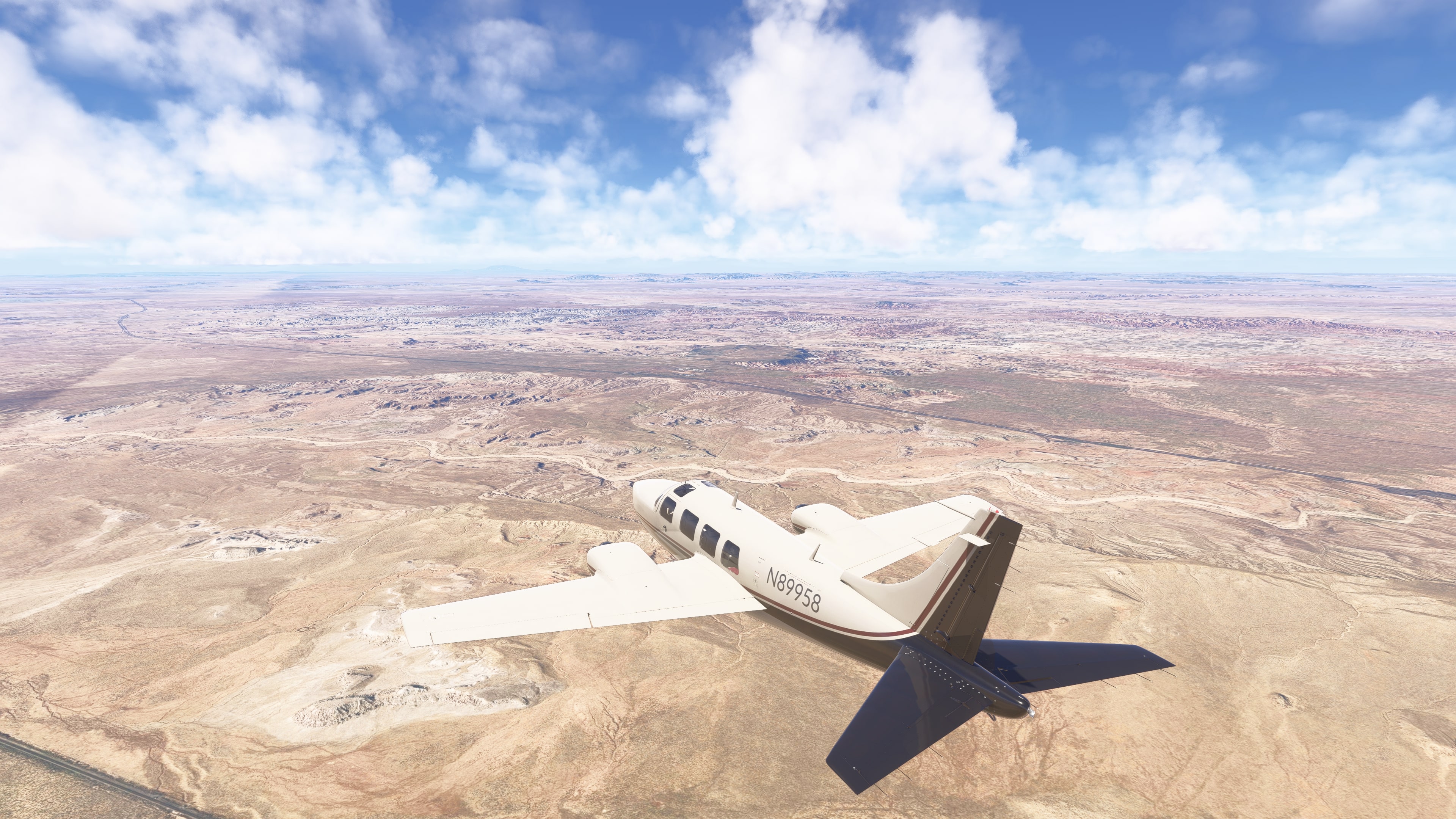 Petrified Forest National Park – fossilized wood and rock formations clearly visible even from higher altitude.